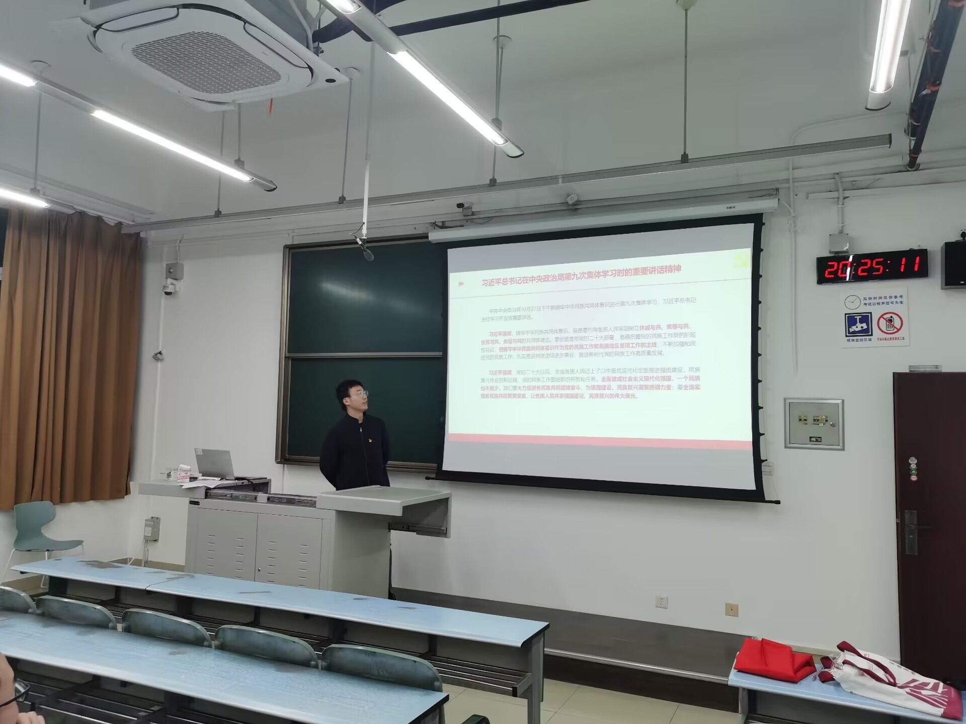 随后,我院本科2020级第一党支部开展了主题党日活动,学习习近平总书记在中央政治局第九次集体学习时的重要讲话精神与第三届“一带一路”国际合作高峰论坛开幕式上的主旨演讲精神。支部同志们认识到建成社会主义现代化强国,一个民族也不能少。我们要大力促进各民族共同团结奋斗,为强国建设、民族复兴凝聚磅礴力量;要全面实现各民族共同繁荣发展,让各族人民共享强国建设、民族复兴的伟大荣光。