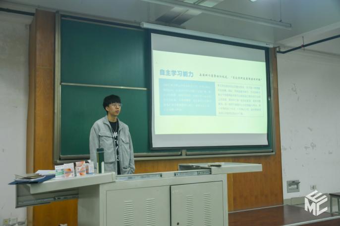 陈田骏从学习经验分享、好习惯分享、工作与学习、科创与竞赛等四个方面展开汇报。对于学习经验分享,他提到学习效率的重要性,和心理状态对于自身高效学习的优越性,并建议按任务轻重缓急以及时长等因素来合理安排任务。他建议同学们适当放松自己,养成好习惯,为培养自身能力做基。在工作与学习上,他认为学习不单只是书本知识,工作亦是学习。为将自己塑造为全面型人才,二者缺一不可,应力求平衡发展,不可顾此失彼,应当相辅相成。在科创竞赛上,要找好方向,深入钻研,不懂就问,诚心请教,讨论促进,严谨实验,方能有所成果。