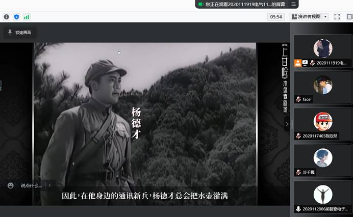 电气学院班级联合会级(学院发展指导中心)于2021年11月23日进行了观看党史学习教育电影的腾讯会议。