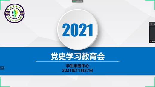2021年11月28日晚20:00,我院学生事务中心全体成员在腾讯会议线上展开了观看党史学习教育。