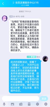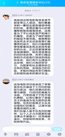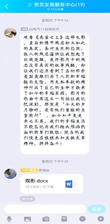 观影后,党发成员互相交流了观影感悟,更是在群里用文字记录了下来。