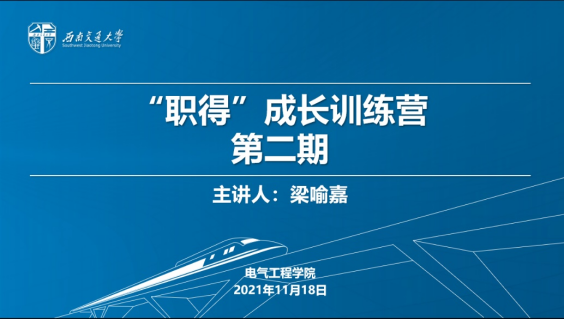 2021年11月18日,我院“职得”成长训练营第二期:个体面试通关四段法顺利举行。受疫情影响,本次活动采取线上的方式进行,主讲人为西南交通大学材料科学与工程学院梁喻嘉老师,训练营全体同学共同参加,会议由辅导员樊芝菱主持。
