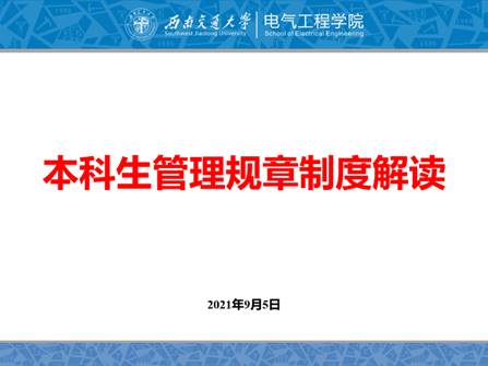 2021年9月5日19时,我院本科2021级在犀浦校区2号教学楼召开第一次年级大会解读《本科生管理规章制度》。本次年级大会在X2321教室和X2218教室同时进行,分别由本科2021级辅导员张异和谢东旭主讲,辅导员刘育阳、王晋瑄及2021级全体本科生参加会议。