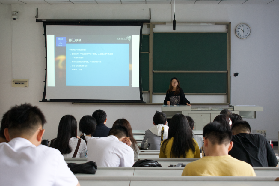 首先,黄建新老师介绍了赴峨眉校区参与活动的老师和同学。在朱旭程同学的主持下,分别由余青松同学,曹浔诚同学,刘涛同学和朱旭程同学向峨眉校区的同学分享介绍了考研、出国留学、保研还有在犀浦校区的学习生活。互动环节中,同学们也向主讲人提出了很多学习生活中遇到的问题,收获颇丰。