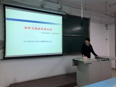 杨锐与黄云柯用图文并茂的课件,丰富详实的案例,全面宣讲了艾滋病在全球发生、传染蔓延、传播危害、预防治疗、宣传防控的背景和知识,从当代大学生的社会活动角度特点,重点介绍了认识艾滋病、预防艾滋病、关爱艾滋病人的社会、心理、传染性疾病预防控制的知识。青年学生既是受艾威胁的重点人群,也是预防艾滋病的主力军。课件介绍完毕后,大家共同观看了防艾宣传视频,同时呼吁大家消除对艾滋病患者的歧视,应给予他们精神上的支持。同学们现场参与互动,充分交流,此次活动有效增强了大家自我保护意识和抵御艾滋病侵袭的能力,对传播防艾知识和预防艾滋病校园传播起到积极作用。