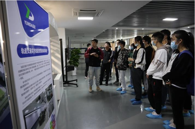 上午9点30分,实践队队员工作人员的带领下开始了对成都运达科技股份有限公司的参观学习。参观过程中,列车牵引与网络控制系统、机车车辆整备与检修作业控制系统、地铁列车360°外观故障检测系统方案等,让队员们切身感受我国目前轨道交通领域的科技力量和工程力量,体会到了将专业知识与实际紧密结合的“交大方案”。