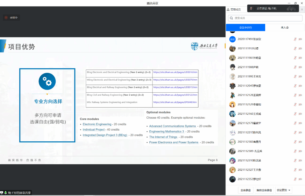 为促进国际化人才培养,加强学生对出国留学的认识和了解,3月15日,我院在线上举办了英国留学申请准备与经验分享会。本次活动邀请了目前在英国留学的2020级电子信息工程专业的鲍子形同学和电气工程与智能控制专业的赵博儒同学,通过线上方式向同学们分享他们的留学申请经验和留学感受。