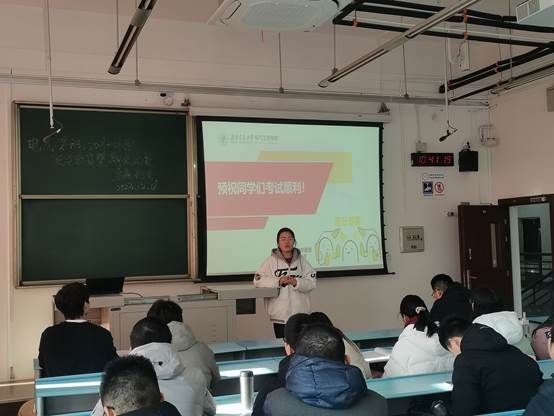紧接着,在班长的组织下,各班召开期末考试动员会。首先班长通过展示各类真实作弊案件及其带来的严重后果,警醒同学们考试中须得保持诚信,并对考试作弊带来的严重后果进行讲解。