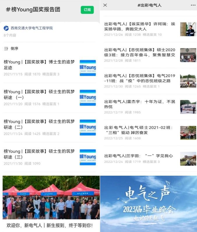 学院打造精品媒体社团,持续创设全媒体矩阵。EMC致力于建设“学院官网”“校友服务”和“新媒体”三大平台。EMC每年度在全媒体平台发布新闻740余篇,平均每个工作日近3篇,官方微信平台总阅读量达36.6万人次。我院官网全方位报道学院动态,涵盖新利体育官网、教育教学、学科发展、科学研究、学生工作等多个方面。2023年度学院官网进行新版改建,新版网站优化页面结构、简化目录菜单、精确导航搜索,于2023年10月上线,得到广大师生的一致好评。同时持续加强校友工作,完善校友服务平台建设,创办《电气人·校友通讯》并持续更新,在校友中引起强烈反响。
