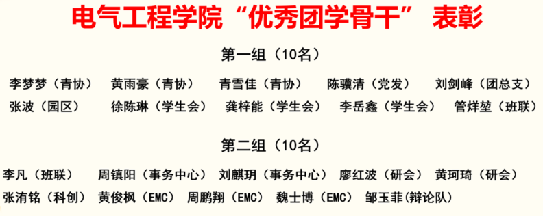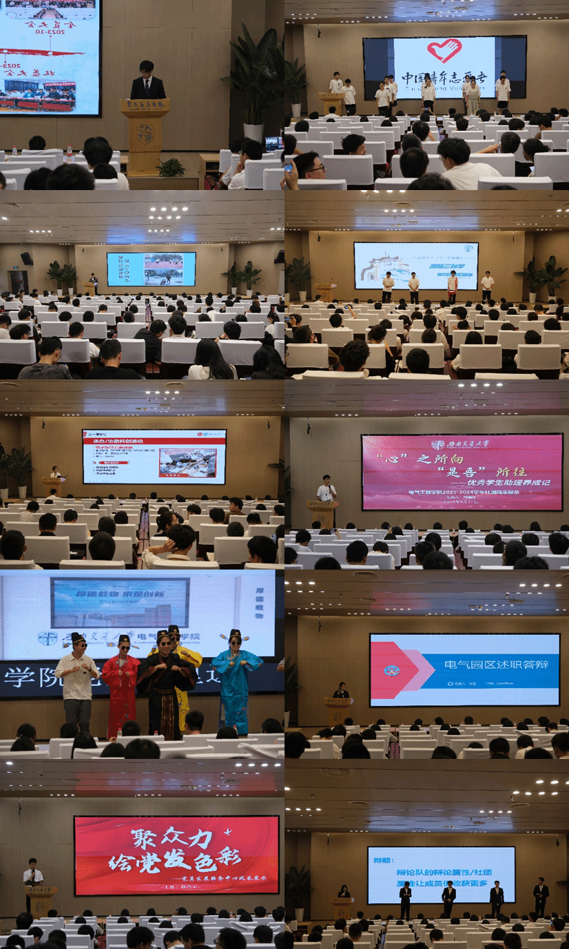 2024年6月14日19:00,我院2023-2024学年“聚青年之力·塑电气先锋”社团风采展示暨团学骨干表彰大会于犀浦校区图书馆二号报告厅举办。本次活动由我院团委主办,我院学生会及团总支承办。学院团委书记张异老师,学院学生社团(组织)学生会、青年志愿者协会、媒体事务中心(EMC)、班级联合会(学业发展指导中心)、大学生科技活动中心、学生事务中心、研究生会、园区自我管理委员会、党员发展服务中心、辩论队、团总支共11个社团(组织)的指导老师及骨干成员们参加会议。