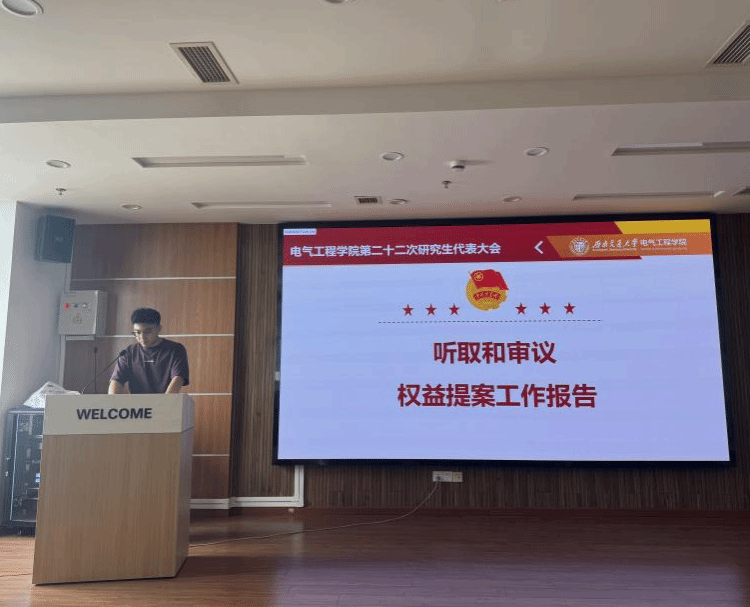 随后由学院第二十一届研究生会主席团成员陆江、张桐源分别作《我院第二十二次研究生代表大会工作报告》、《我院研究生会权益提案工作报告》。