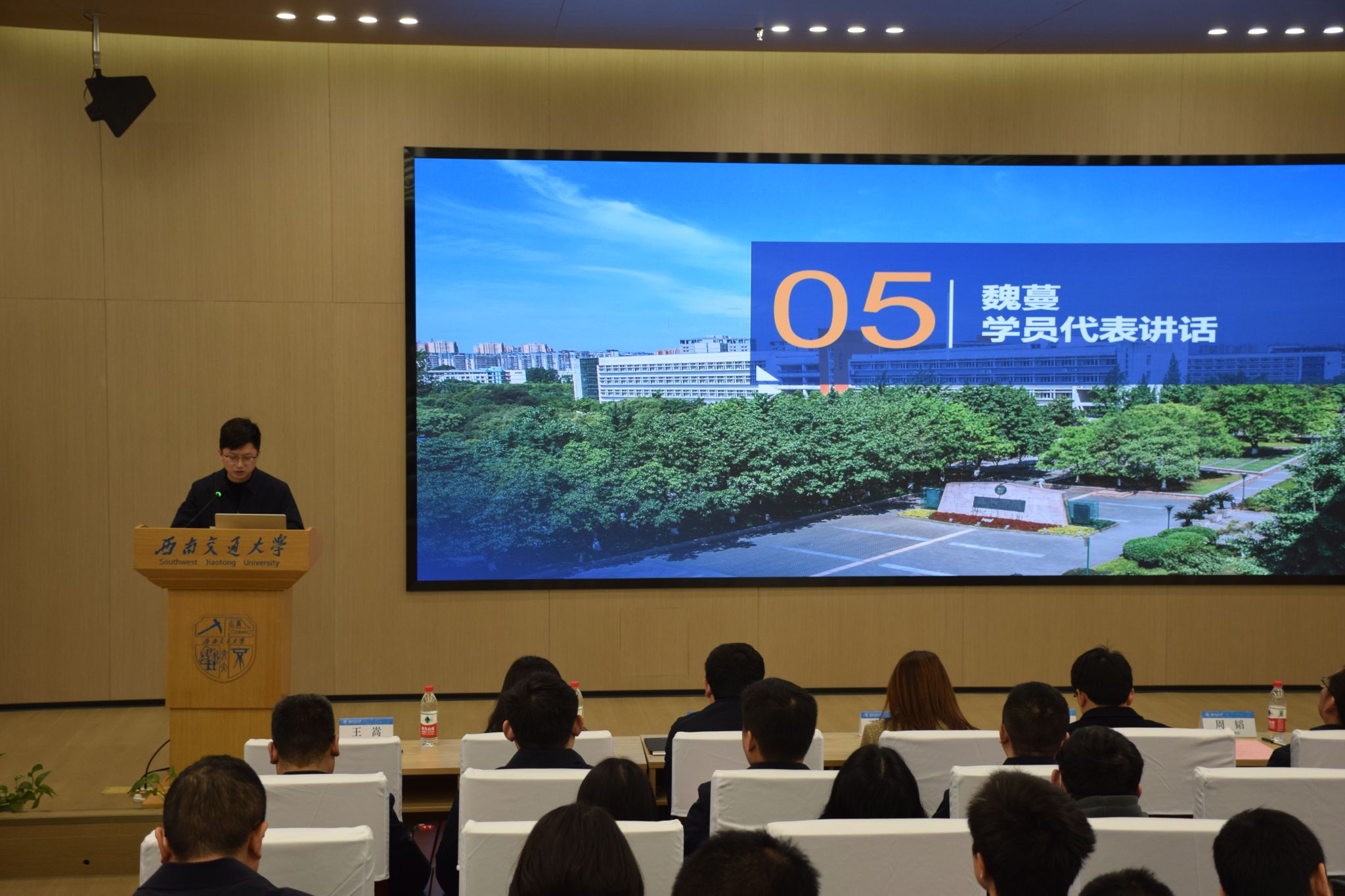 聘书颁发仪式结束后,学员代表魏蔓发言。首先,魏蔓代表培训班全体学员对东方电气集团相关领导、西南交通大学相关领导和老师表示衷心的感谢。他讲到,目前世界正处于百年未有之大变局时代,每个人都应该肩负起助力中华民族伟大复兴的重任,因此每位成员都应该珍惜此次学习机会,努力提升个人能力,在将来的工作中更好地报效国家。
