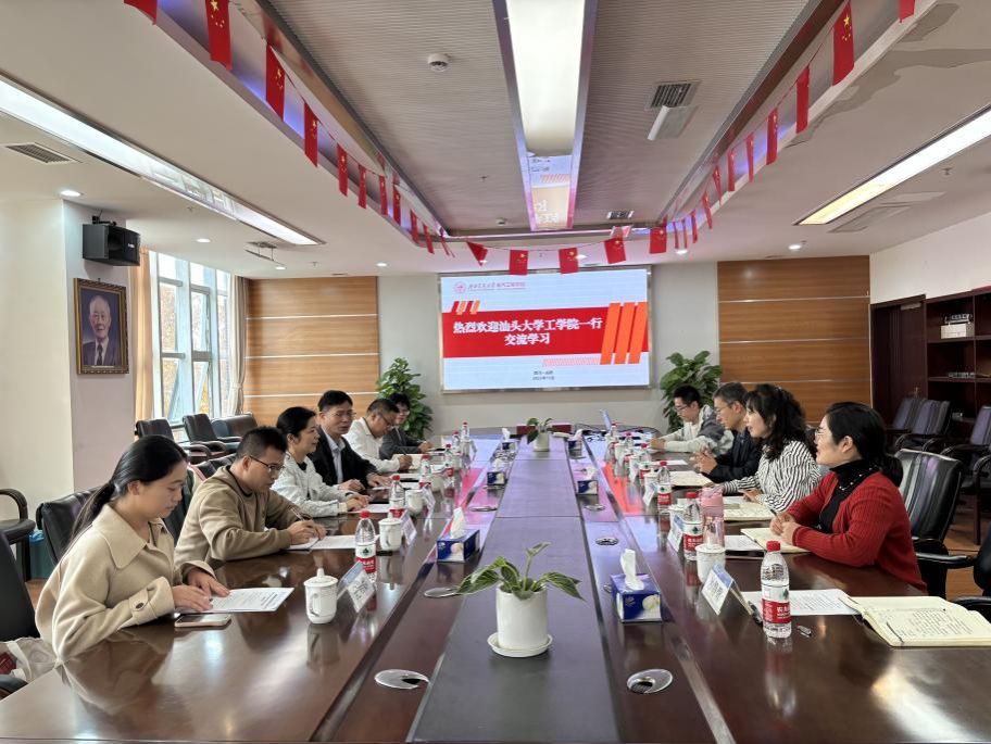 为加强两校之间的沟通与联系,互相交流学习,推进各自学院学生科创工作的进一步发展,11月28日下午15时30分,汕头大学工学院一行到学院开展交流座谈。汕头大学工学院党委书记郑再新,党委副书记、敬一书院副院长(主持工作)姚熠,党委组织员、团委负责人、敬一书院办公室负责人张凯梁,辅导员宋碧霄、纪培娜,医学院计财处处长柏胜;新利体育党委书记王斌,党委副书记谢力,团委书记张异,辅导员谢东旭、沙静馨参加会议。谢力副书记主持会议。