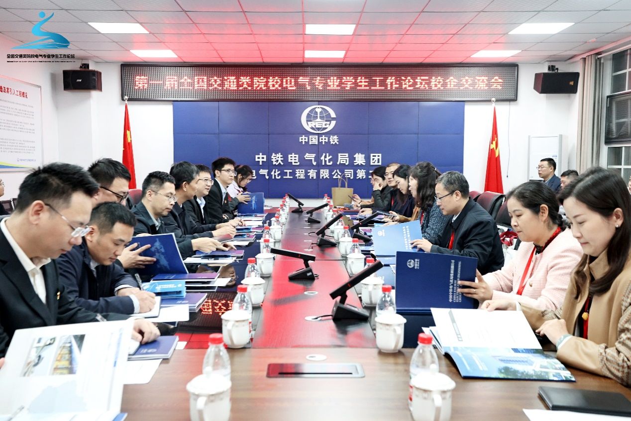 主题交流结束后,参会代表还来到西南交大机车博物园参观交通强国科学家精神教育基地。随后前往中国中铁电气化局成渝中线成都枢纽项目部实地参观,了解了企业文化、智能建造及项目开展情况,并开展校企交流座谈会。座谈会上,中国中铁电气化局成渝中线成都枢纽项目党工委书记窦俊辉表示,希望通过本次学生工作论坛为加强校企合作交流、培养专业人才提供更完善的交流平台。参会代表共同观看了中铁电气化局添翼文化宣传片、智能建造宣传片,并就校企双方在科研成果转化、人才培养等方面的合作进行交流。