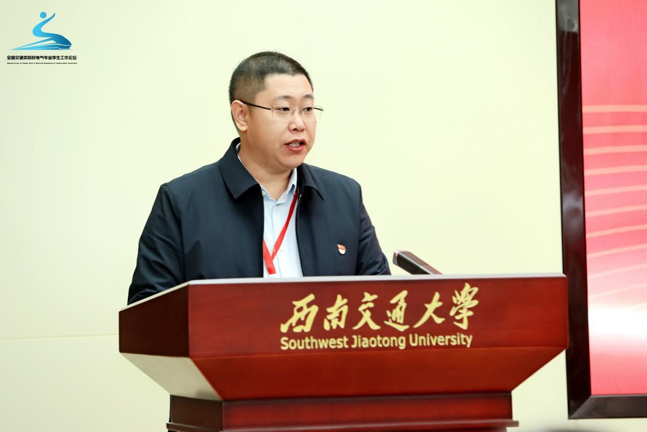 新利体育院长何正友教授从学院历史、学科建设、科研水平等方面介绍了学院发展情况。站在新的历史起点,何院长表示,未来学院将继续扎根轨道交通电气化事业,紧密服务于国家重大需求,继续加强学工队伍的建设,促进学工形式多样化发展。他提到,首届全国交通类院校电气专业学生工作论坛是一场思想的盛宴,一次发展的契机,能够更好地推进新时代大学生思想政治教育工作,通过培育时代新人切实提高服务国家、地方、行业重大需求和经济主战场的能力,为国家经济建设、社会发展做出更大贡献。