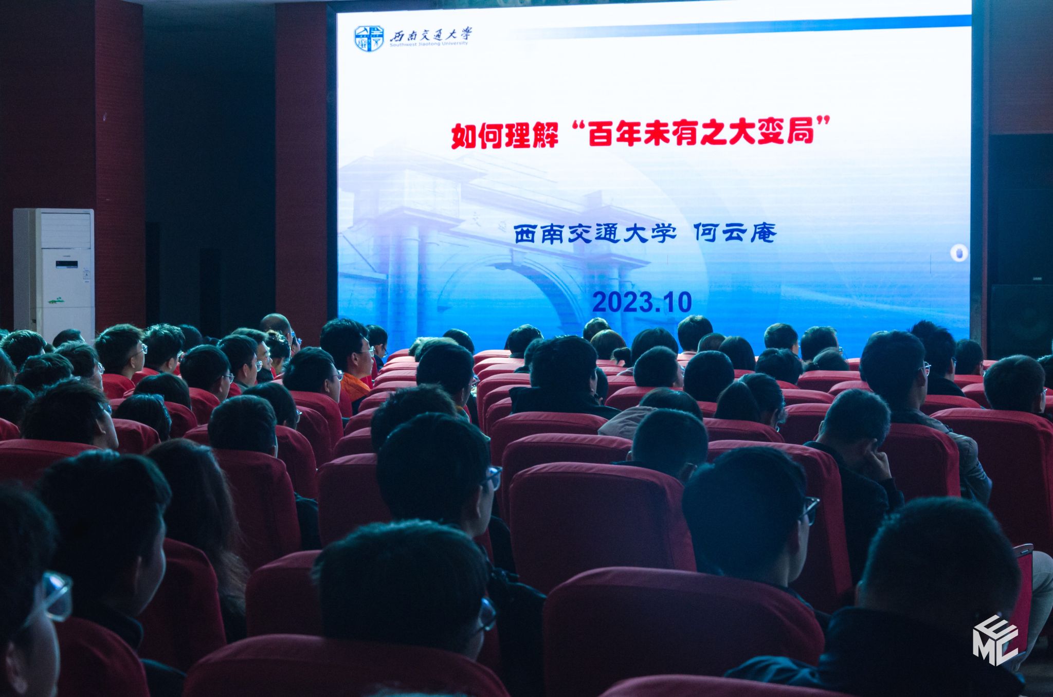 2023年11月16日,新利体育在犀浦校区开展题为“如何理解百年未有之大变局初探”的专题党课。此次讲座邀请国内著名学者、西南交通大学何云庵教授担任主讲,学院师生党员参加讲座。何教授以其深厚的文化底蕴和长远的战略眼光,为师生解读了新时代背景下对于世界格局中的重大转变如何进行深刻理解与应对的相关问题,并构建了关于中国与世界关系变动的全新视角。