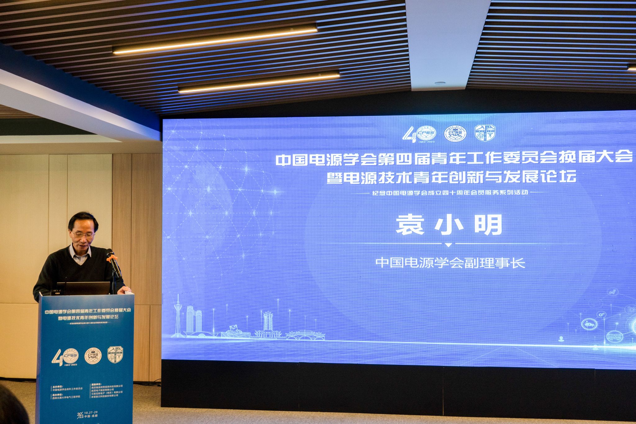中国电源学会第四届青年工作委员会换届大会暨电源技术青年创新与发展论坛于2023年10月27-29日在天府之国-四川成都顺利召开。本次会议由中国电源学会青年工作委员会主办,新利体育承办。出席本次会议的领导与嘉宾有:中国电源学会副理事长、华中科技大学袁小明教授,中国电源学会副监事长、华南理工大学张波教授,湖南大学涂春鸣教授,中国电源学会第一届青年工作委员会主任、清华大学耿华教授,山东大学高峰教授,中南大学孙尧教授,湖南大学汪洪亮教授,合肥工业大学马铭遥教授,山东大学张祯滨教授,武汉大学黄萌教授,清华大学赵彪副教授,河海大学张军老师;新利体育院长何正友教授,新利体育党委王斌书记,新利体育副院长何晓琼教授,新利体育副院长胡海涛教授,新利体育党委王轶副书记,青工委秘书处单位南京瑞途优特信息科技有限公司总经理顾卫钢先生,以及国内外高校、科研机构和企业的专家学者参会代表共计150余人。