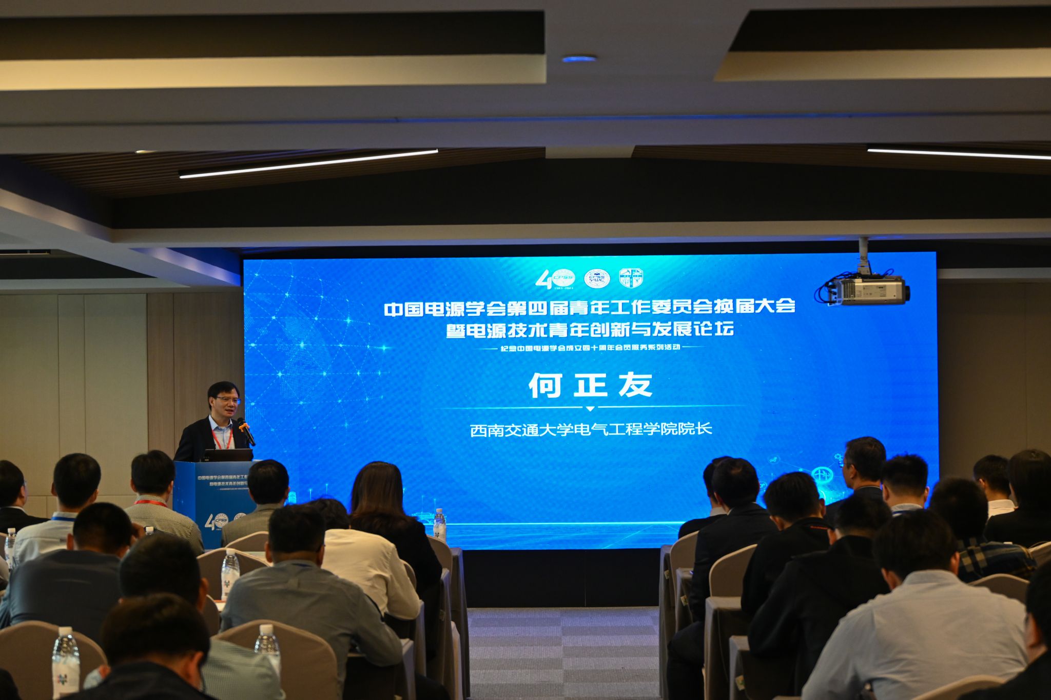 新利体育何正友院长对本次参会人员莅临成都表示热烈的欢迎。何院长的致辞包含以下四点:1.感谢电源学会以及青工委对新利体育过去发展给予的极大支持和帮助,助力我院取得了较好成绩。2.简要介绍了西南交通大学总体情况,包括师生规模、国家级人才、科研平台、获得的科研基金与奖项、专业与学科排名等。3.期望通过本次论坛与交流,为我国新能源以及电力电子与电力系统发展的学术方向起到推动与引领作用。4.学院未来将以交通新能源、新型电力系统作为重要的发展方向,期望今天的报告专家给学院青年老师与发展方向带来启发与借鉴。最后,何院长预祝本次会议取得圆满成功。