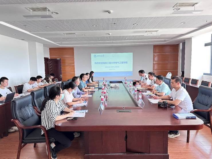 为加强两校之间的沟通与联系,推动文职人员遴选招聘工作,5月29日14时,海军工程大学我院一行到学院开展交流座谈。海军工程大学我院某教研室主任甄洪斌,课程团队负责人于飞、杨律,实验室张正康以及学院干事张佳栋;新利体育院长何正友、副院长陈民武、电力工程系副主任张血琴、电力电子与电力传动系副主任/《电机学》课程教师葛兴来、电力电子与电力传动系副主任王嵩、《电力电子技术》课程教师沙金、学生支持办公室主任张婷婷、教学秘书李砚玲参加会议。陈民武副院长主持会议。