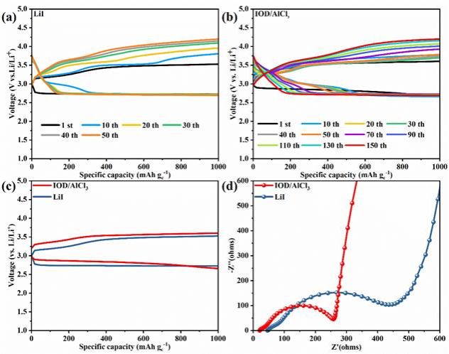 图2. 添加IOD/AlCl3的锂氧气电池的电化学性能