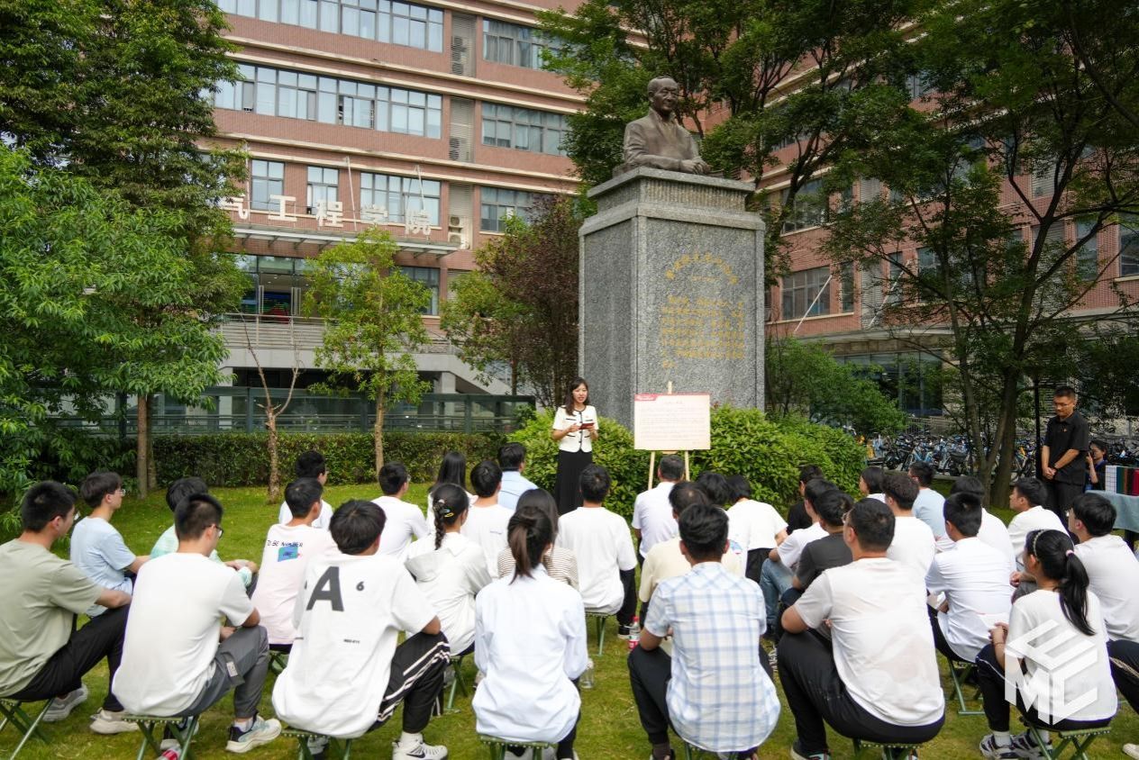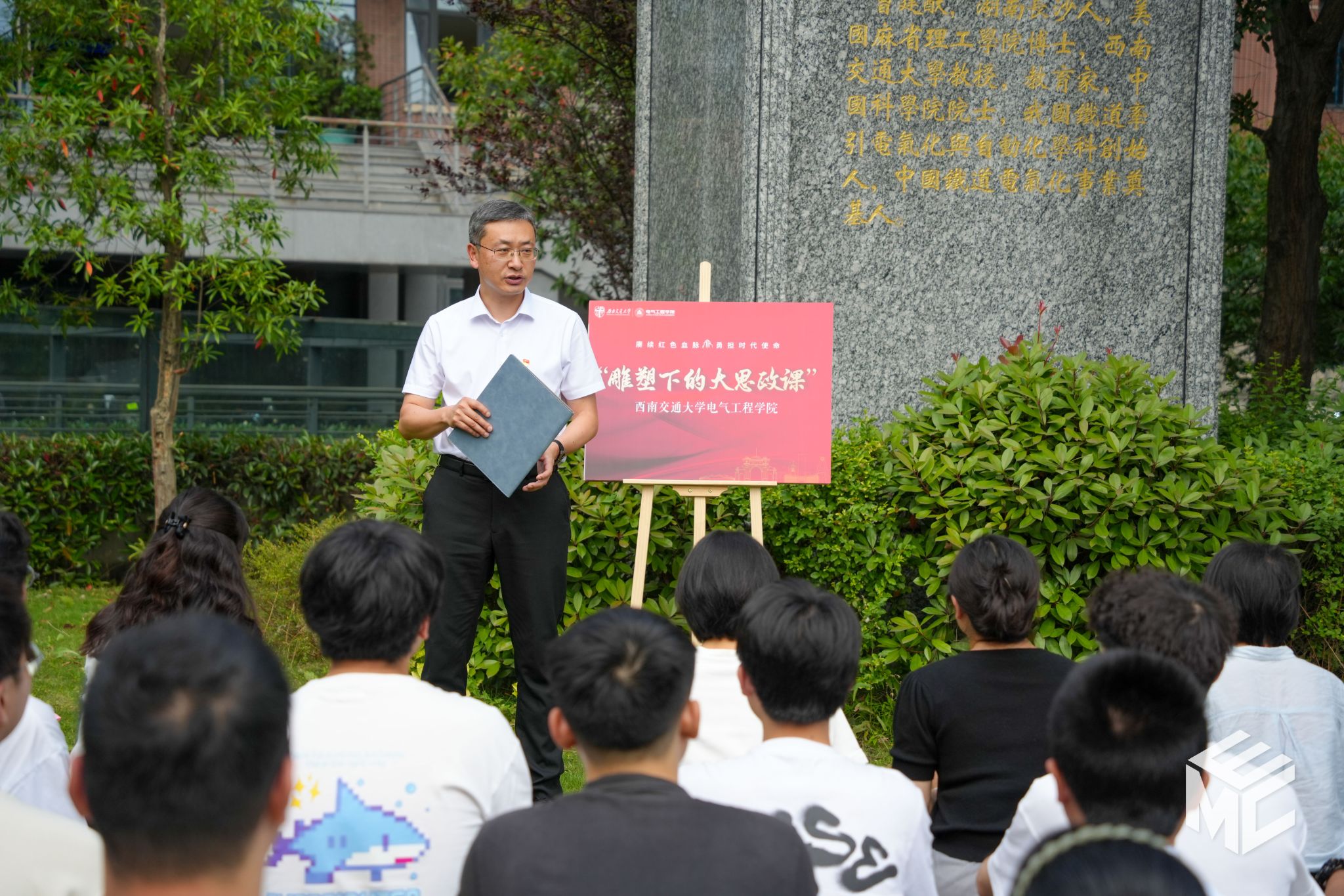 2024年5月16日下午,首期“雕塑下的大思政课”在西南交通大学犀浦校区电气馆楼前“曹建猷院士雕塑”下开展。我院党委书记王斌引用曹老原话“一切为了祖国,为了祖国建设”“其实平日想得最多的还是诸葛亮那句‘鞠躬尽瘁,死而后已’”,动情地讲述了曹老的三个故事: