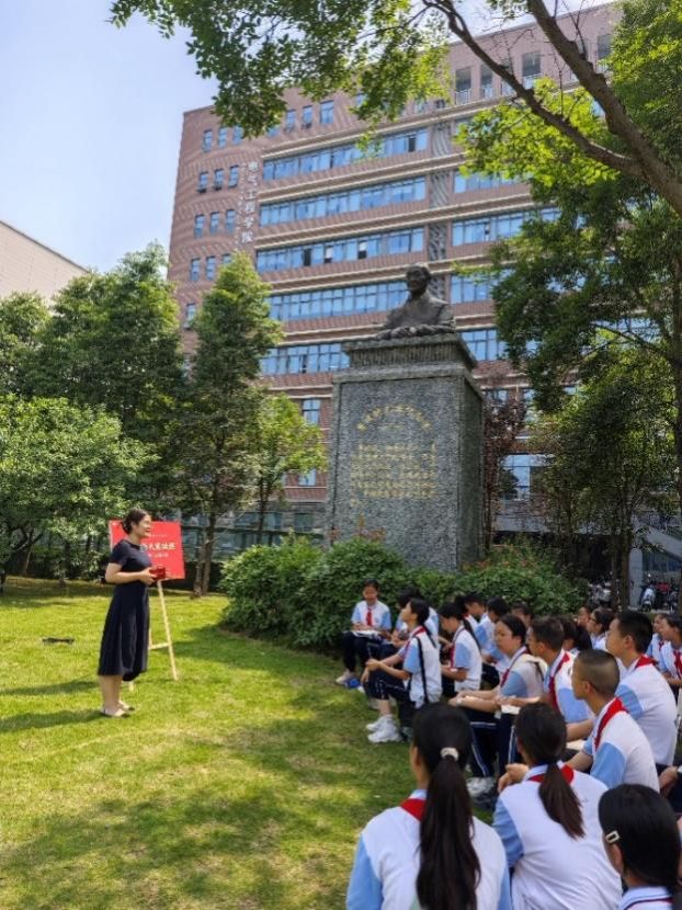 如何解锁“大中小学思政课一体化”的正确“打开方式”?2024年6月13日上午,站在曹老的雕塑下,我院团委书记张异为成都教科院附属龙泉学校的师生同学们生动地讲述了以曹建猷院士为代表的“科学家精神”大思政课。