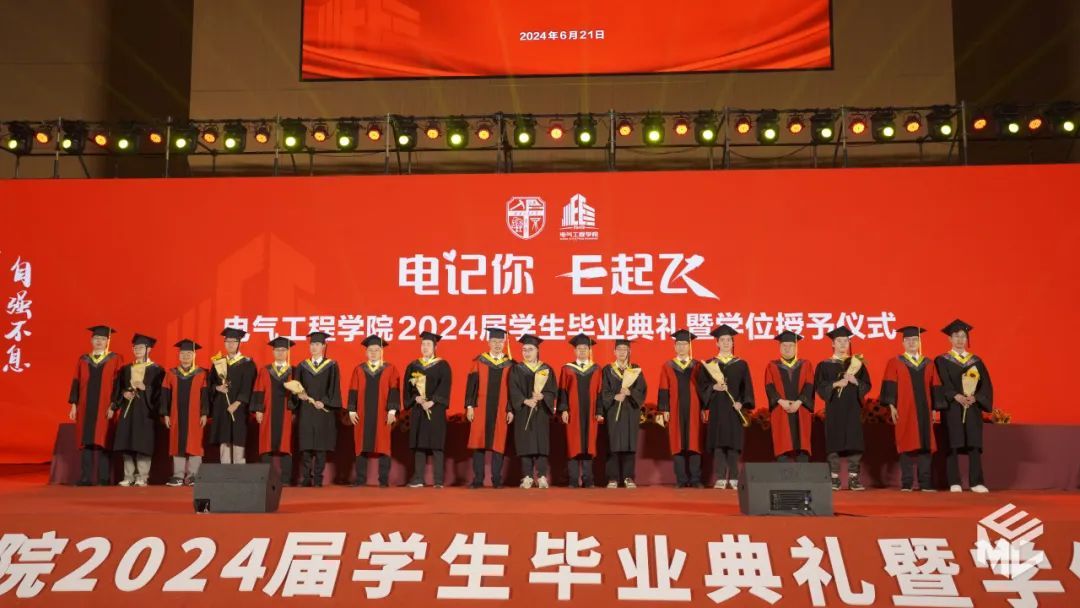 我院院长马光同,党委书记王斌,党委学生工作部副部长谢力,校友工作办公室副主任阮波,学院党委副书记、副院长、纪委书记王轶,党委副书记邢晓鹏,副院长何晓琼、解绍锋、陈民武、刘志刚,院长助理、电子信息工程系系主任黄德青,院长助理、电力电子与电力传动系系主任宋文胜,院长助理廖凯、高国强、韩莹,电工电子系系主任严仲明,本科2020级班导师,专业课教师,学生工作组全体辅导员,全体本科毕业生、研究生毕业生代表及学生家长出席典礼。典礼由邢晓鹏副书记主持。