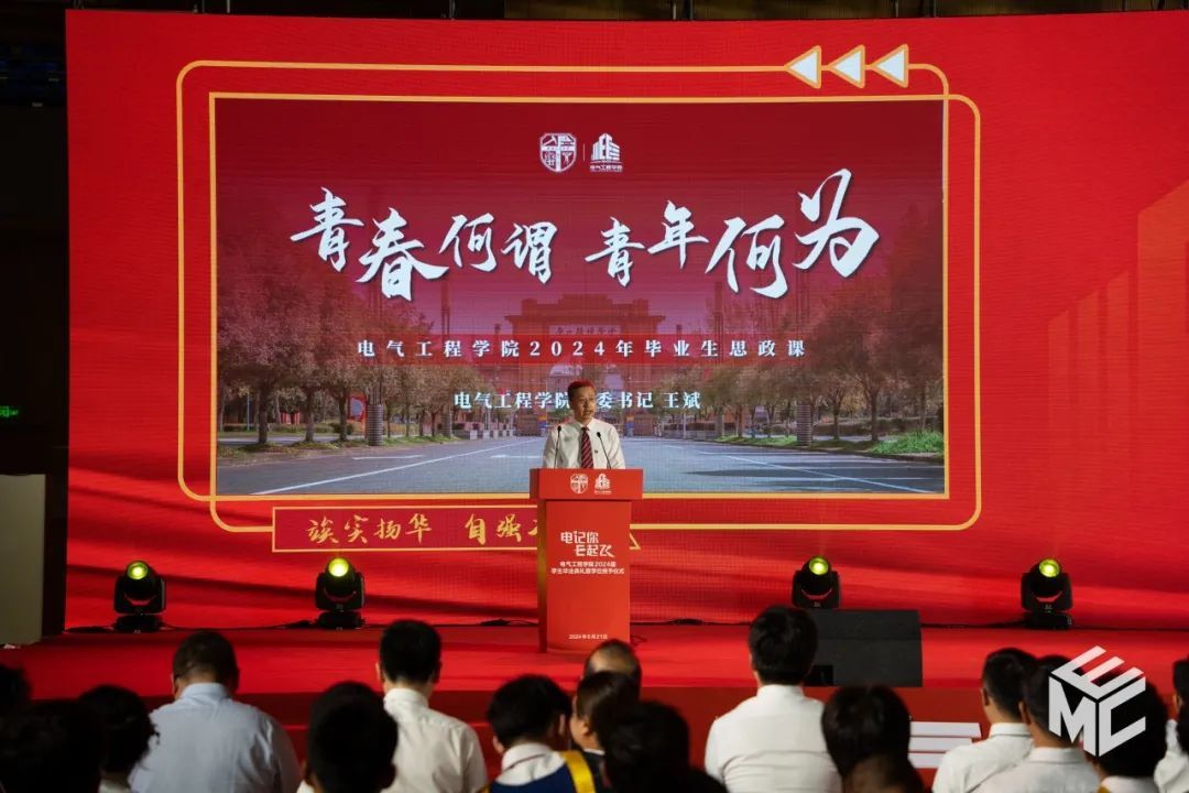 王斌书记与全体师生共上一堂思政课,以“青春何谓,青年何为”为主题鼓舞电气青年学子志存高远、脚踏实地,并向毕业生们提出三点建议: