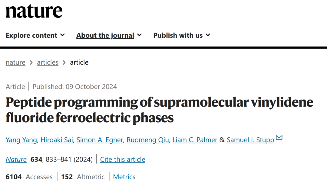 近期,国际著名学术期刊《自然》(Nature)正刊在线发表了电气工程学科、电工材料领域的最新研究成果。该成果的论文标题为:Peptide programming of supramolecular vinylidene fluoride ferroelectric phases,论文的第一作者杨洋博士为我院2010级电气工程及其自动化专业本科毕业生。