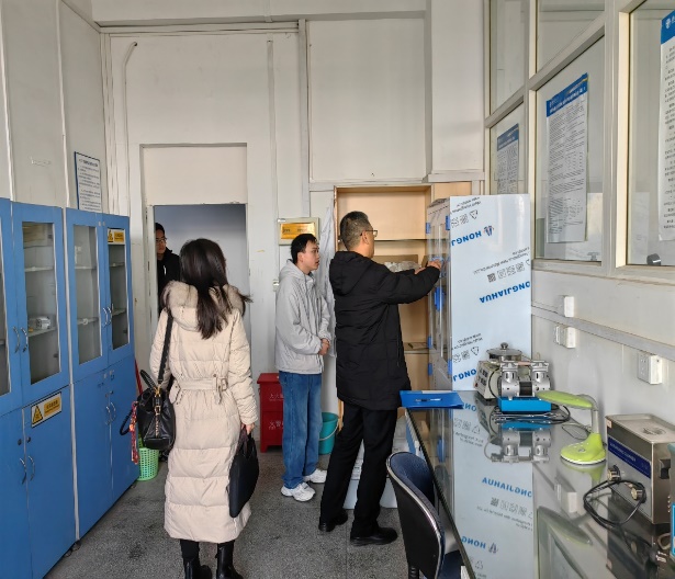 王斌书记在检查中强调:一是要进一步细化实验室安全管理规范,增强师生实验室安全意识及应急能力;二是要进一步完善实验室安全管理制度,强化分级分类管理,各实验室要及时填报实验室登记表,落实自查制度,务必落实到人,并切切实实地执行,有效防范安全事故发生;三是要严格贯彻落实实验室安全管理各项要求,充分发挥安全员的作用,对于检查发现的问题隐患,要迅速整改到位,并加强整改“回头看”,切实保障实验室安全。