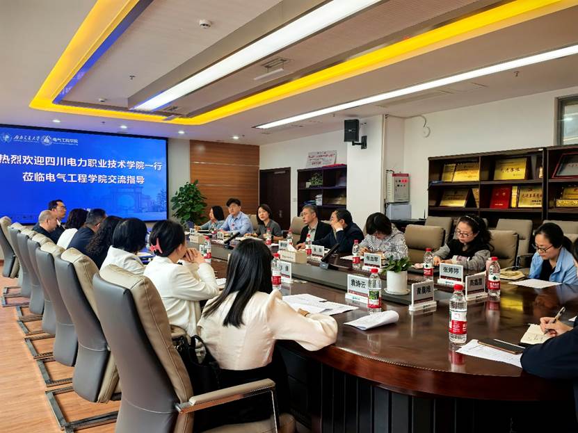 2025年4月16日上午,四川电力职业技术学院一行到学院开展交流座谈。四川电力职业技术学院党委书记杜兵,三级职员王薇,副总政工师、党委党建部(党委宣传部)主任、党支部书记李静等,以及我院党委书记王斌,党委副书记、纪委书记、副院长王轶,党委副书记邢晓鹏,教学工作主管韩莹,团委书记张异等参加会议,王轶副书记主持会议。