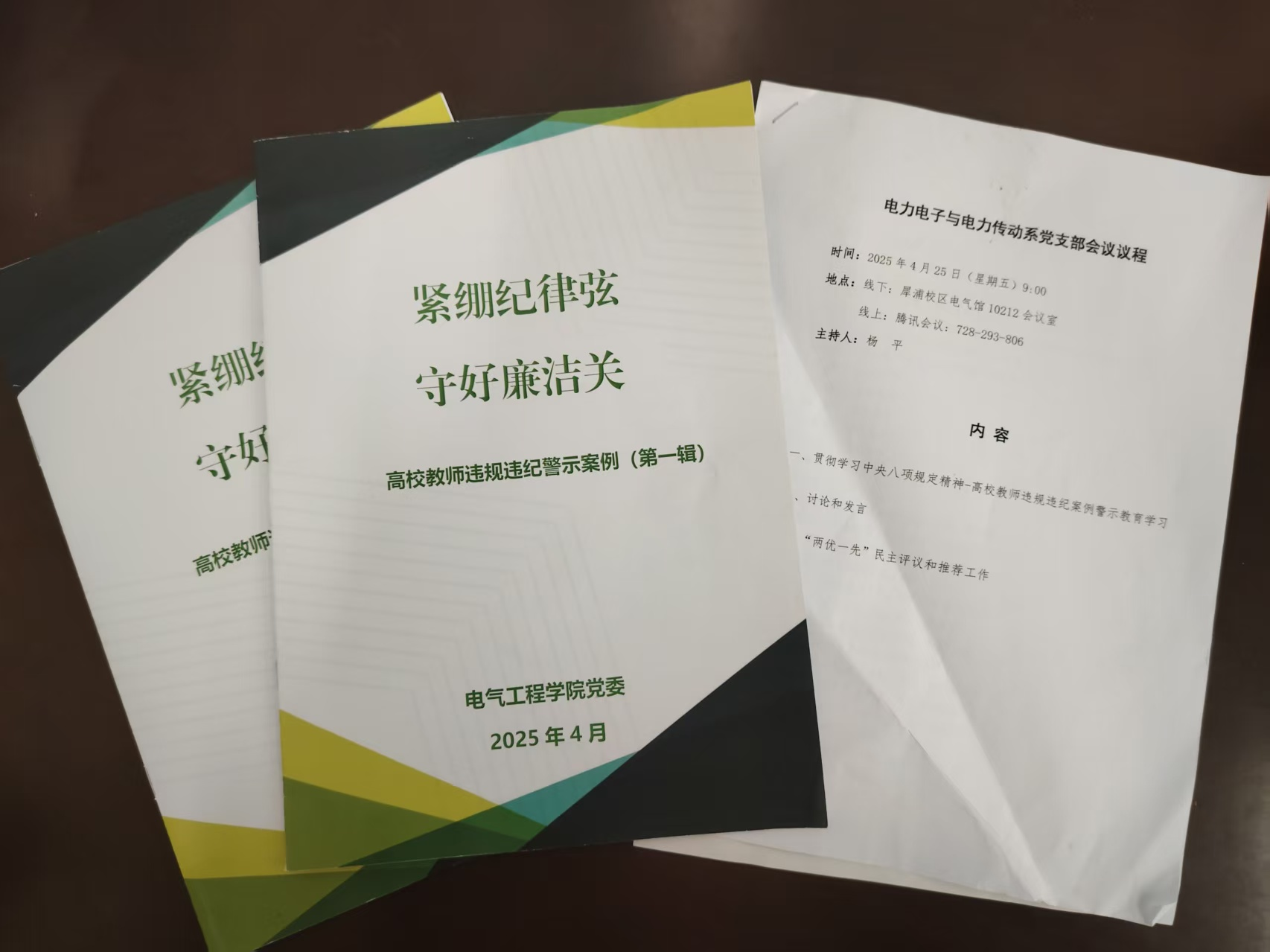 电力电子与电力传动系教工党支部认真组织开展本次主题党日活动。“一个人遇到好老师是人生的幸运,一个学校拥有好老师是学校的光荣,一个民族源源不断涌现出一批又一批好老师则是民族的希望”,引用习近平主席的重要讲话,支部书记杨平同志主持开展了“紧绷纪律弦,守好廉洁关”高校教师违规违纪案例警示教育学习。