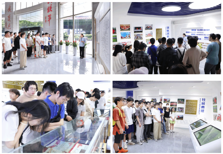 活动伊始,学生代表们走进中铁二十三局企业文化展厅,通过历史影像、图文展板及多媒体互动,系统了解企业从传统基建到新能源、智慧建造等新兴领域的全产业链布局,深刻感知其团队文化精神与社会责任。