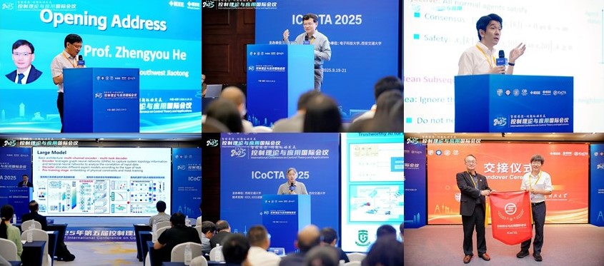 9月19日至21日,第五届控制理论与应用国际会议(ICoCTA 2025)在四川省成都市顺利召开。本次会议由西南交通大学主办,电子科技大学与西安交通大学联合协办,并得到了IEEE、IEEE成都分会的技术支持,香港城市大学陈杰教授和南京大学周克敏教授担任大会总主席。来自国内外的100多位学术专家、学者和业界人士齐聚一堂,共同探讨控制理论与应用领域的最新进展与前沿技术。